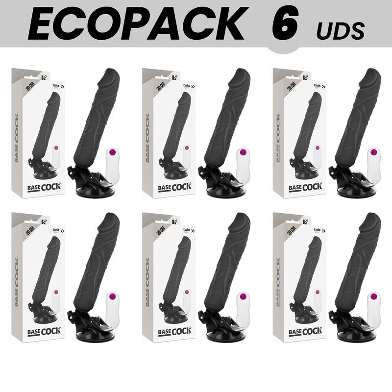 ECOPACK 6 UNITS - BASECOCK REALISTIC VIBRATOR REMOTE CONTROL BLACK 20 CM -O- 4 CM